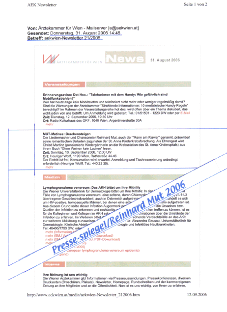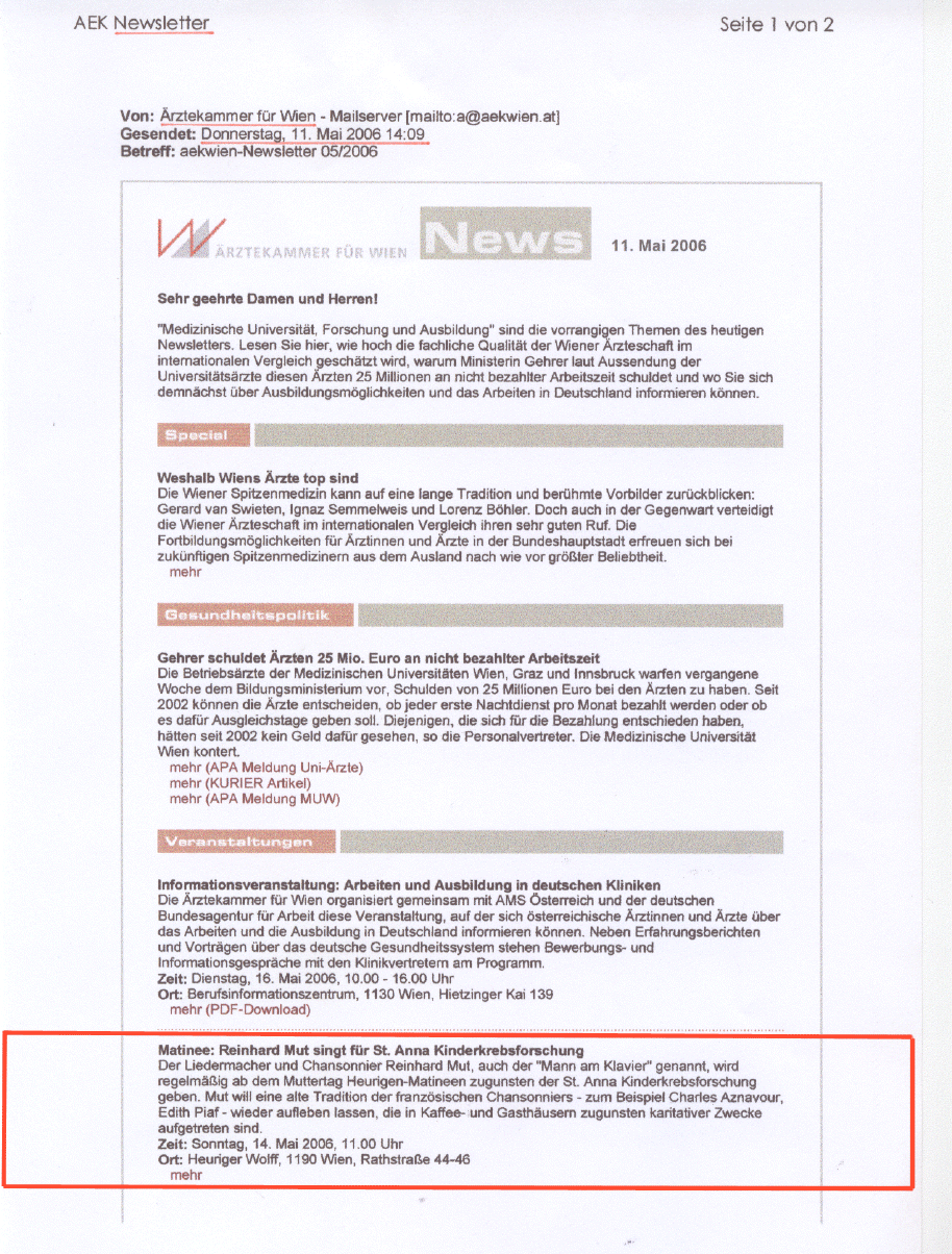 Sie sind hier: Medien-Echo 2005/06 Med. Fachmedien Ärztekammer Wien